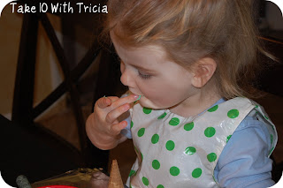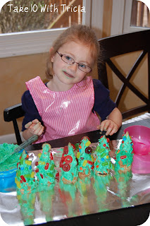 Stella spent the whole time precisely “painting” each tree and methodically placing each “ornament”. Charlotte spent 15 minutes decorating her six trees and 75 minutes eating all the candy off of them.