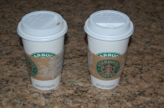 The cup on the left is how I normally get handed my cup from the barista.  The cup on the right is the only way I will drink it.  Yes, I am so anal that I must make sure the logo on the cup and the logo on the sleeve are aligned…perfectly.  And…