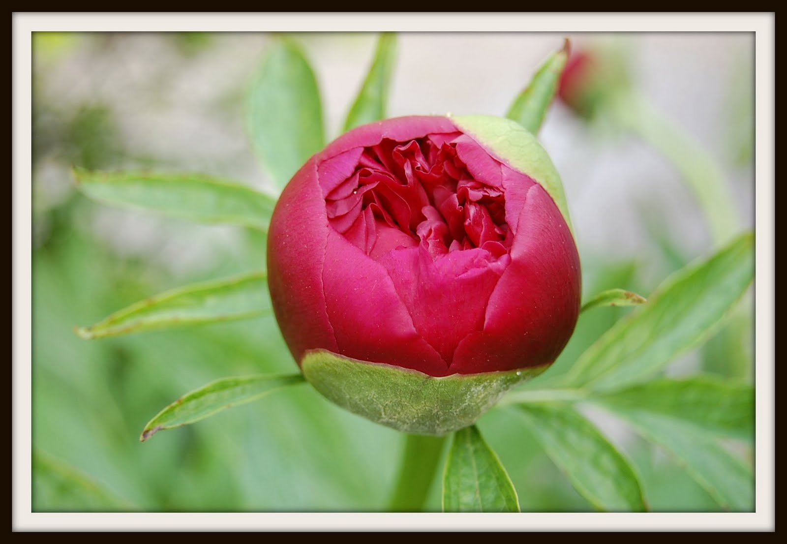 Spotting Peonies about to bloom near her driveway