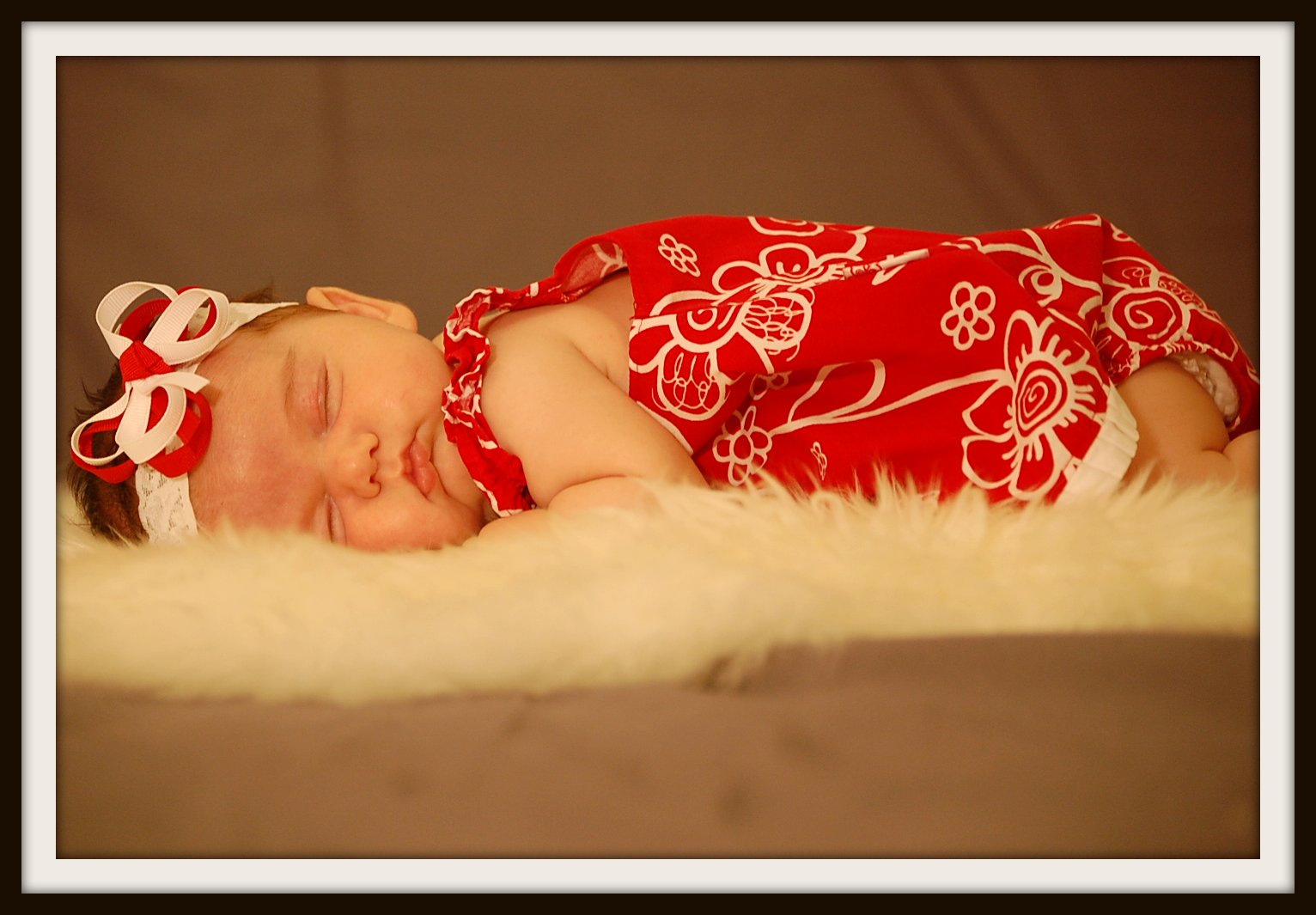 And so we borrowed a few props from another photography-loving friend and spent the afternoon getting the little one all dolled up for photos and bribing her brother to be good (which he was). Once we got her to sleep, the photos got a lot easier. However, I definitely will be investing in a photography light next. You can see that the garage lamp I had rigged didn’t provide the best lighting option. All in all, I still think she looks precious.
