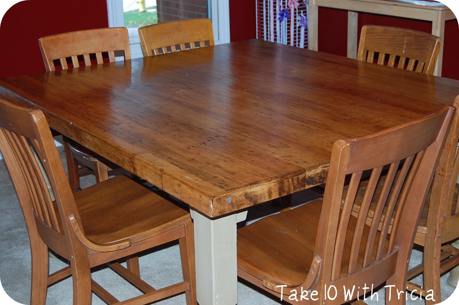 After some hard work and long hours…yep, wait for it….I have a dining room TABLE!!  My husband about fell over and we even took pictures to prove it: