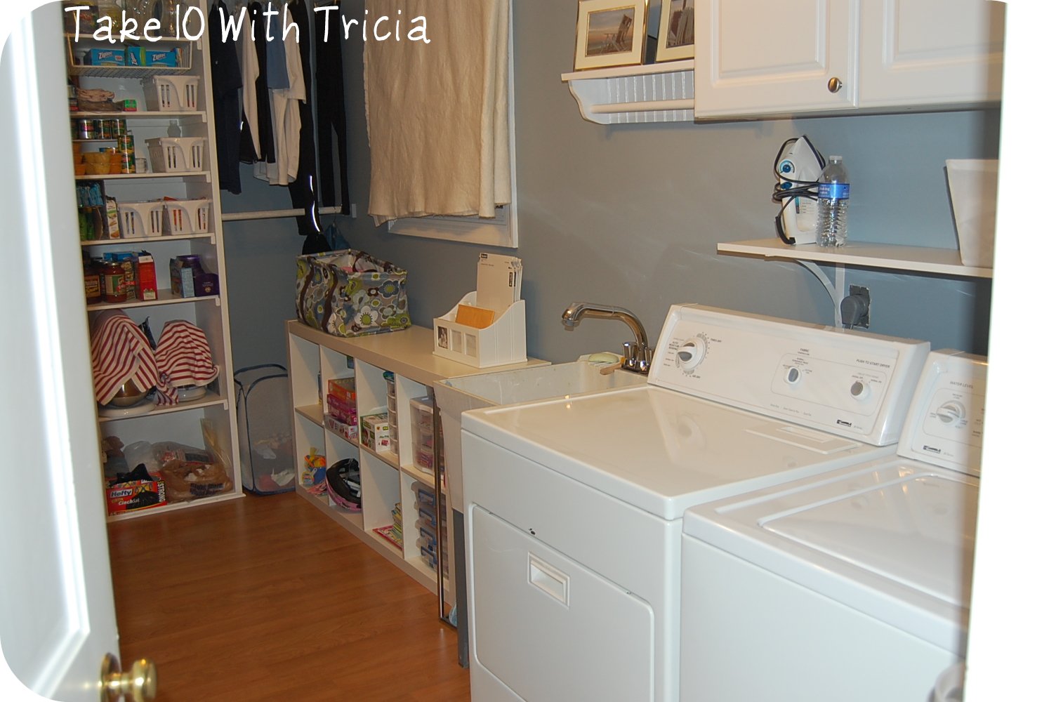 1. Wow, that looks great. What a huge laundry room! Ours is tiny – it’s just a passthrough from the garage to the house, which happens to hold our washer and dryer… and the dogs’ food and water… tight quarters. I love what you’ve done with yours to organize it and make it look so clean!